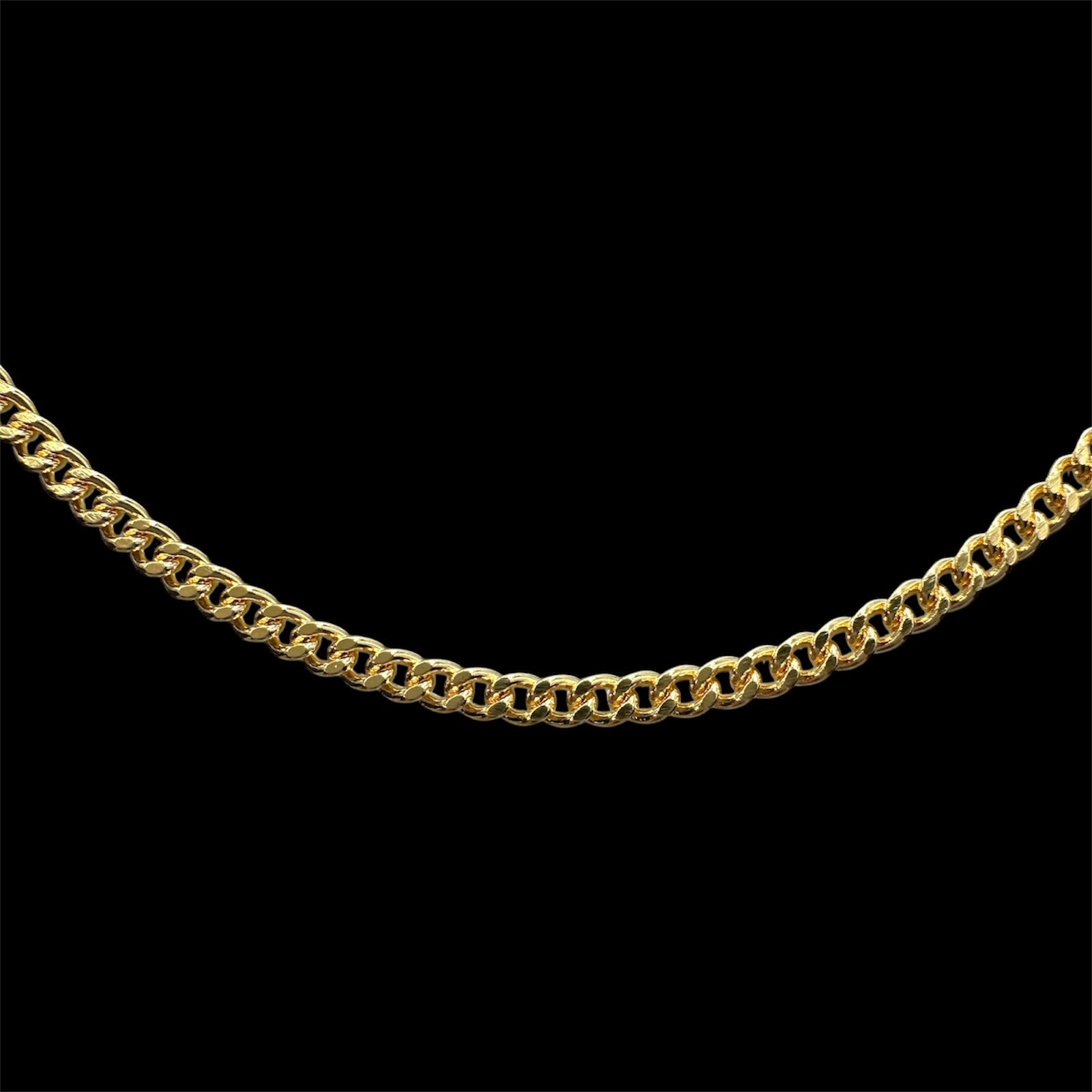 Sleek, subtle, and endlessly versatile — our 2.1mm Custom Curb Chain is the perfect everyday accessory. Featuring a rich 18ct gold layered finish and protected with a durable acrylic seal, this lightweight chain is designed with tightly linked, flat-edged curb links for a clean, polished look that layers beautifully or shines on its own.