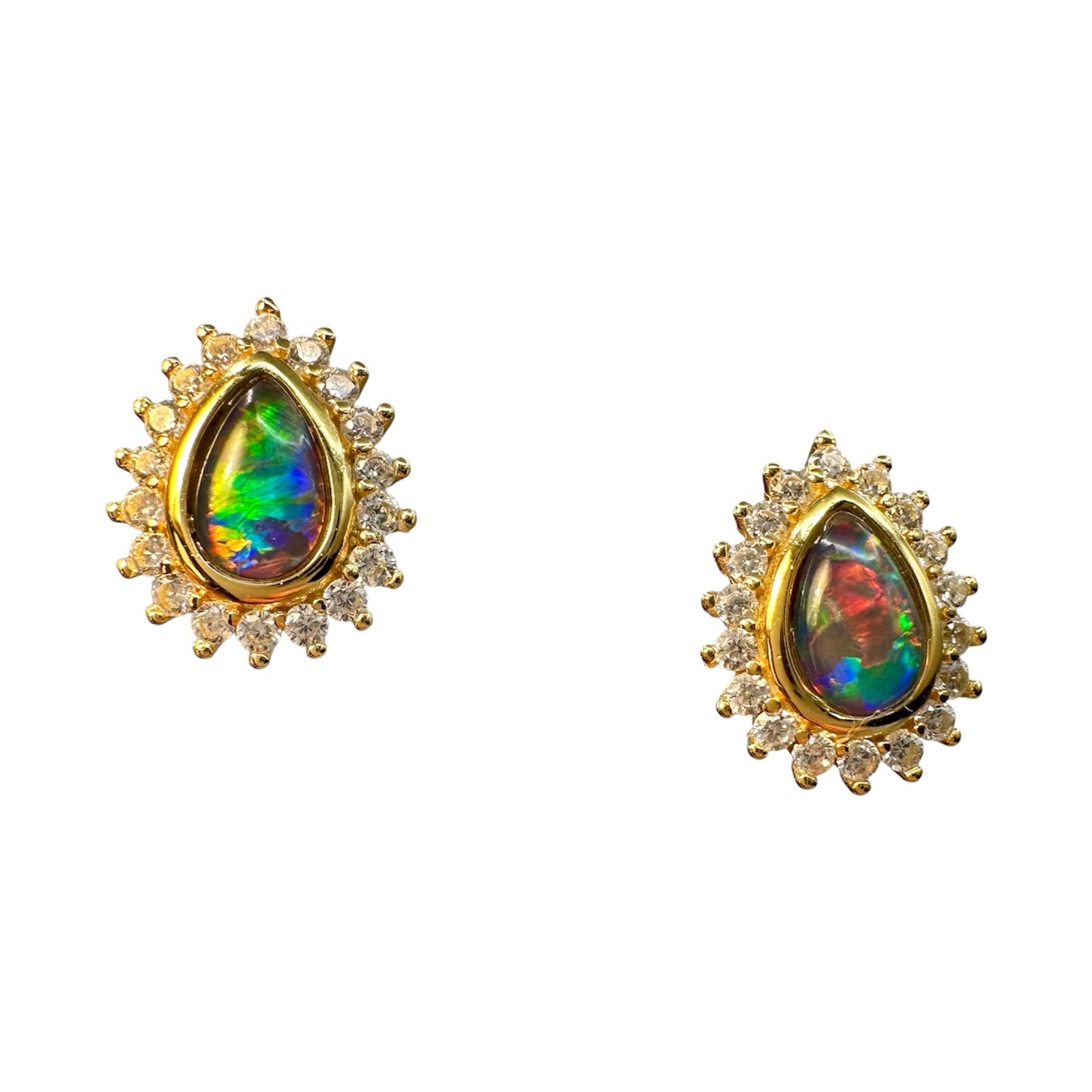 Gold-Plated Triplet Opal Stud Earrings